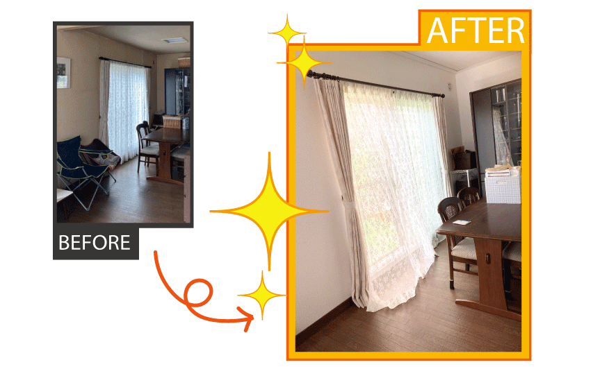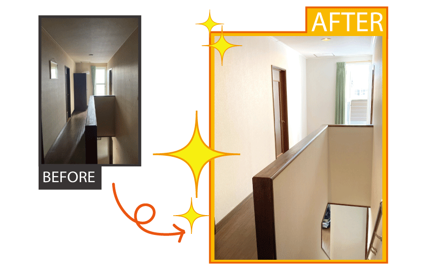担当者より一言! | ・単身赴任から戻られるお父様の為に、「キレイにして迎えたい」という娘様の素敵なサプライズでリフォームのご相談がきっかけでした。 ただクロスを貼りかえるだけではなく細かい部分の仕上げにもこだわりました。 ---------------------------------------------------------------------------------------